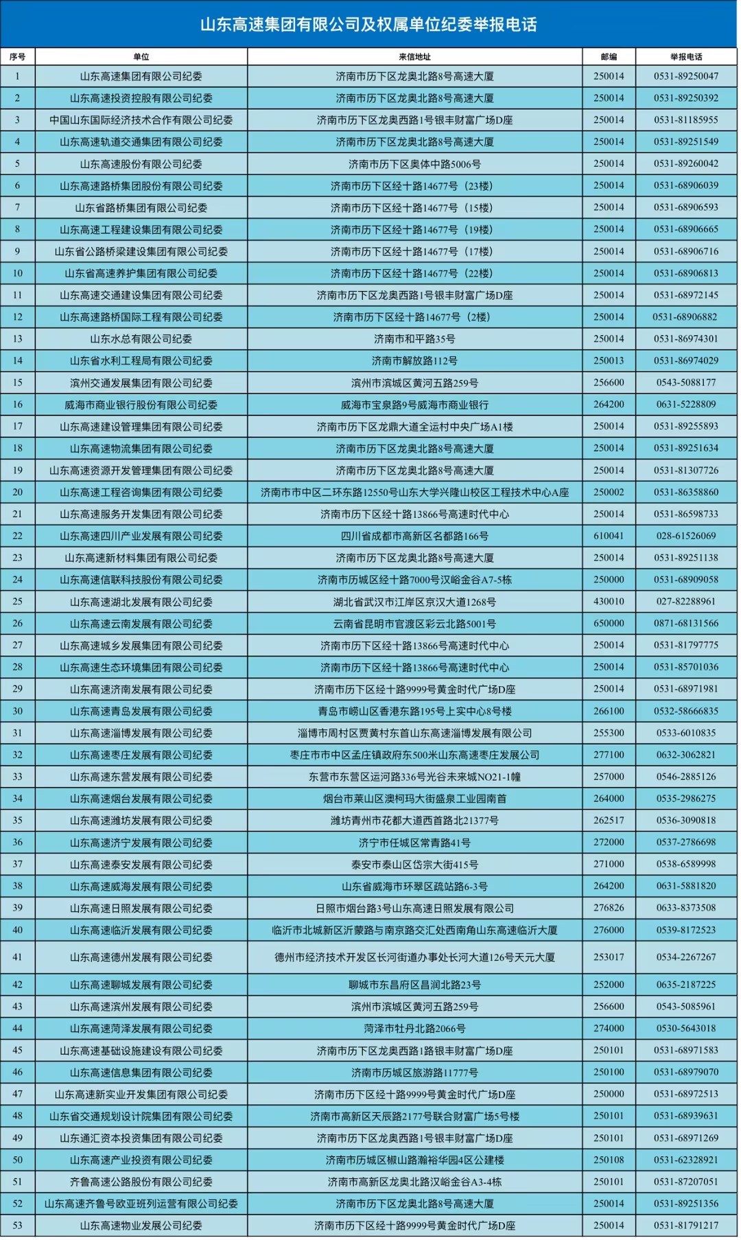 山東高速集團有限公司及權屬單位紀委舉報電話