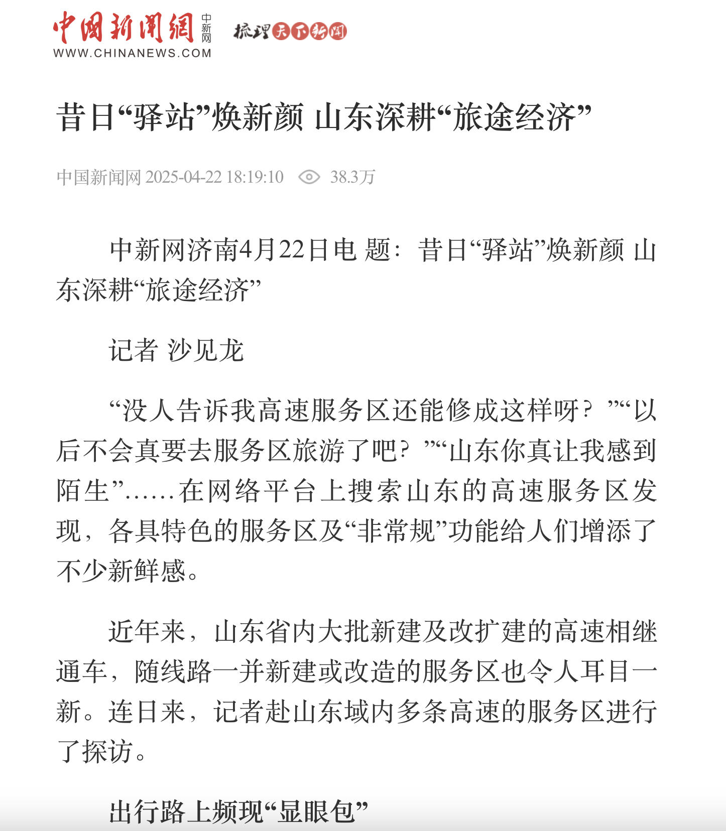 【中國(guó)新聞網(wǎng)】昔日“驛站”煥新顏 山東深耕“旅途經(jīng)濟(jì)”