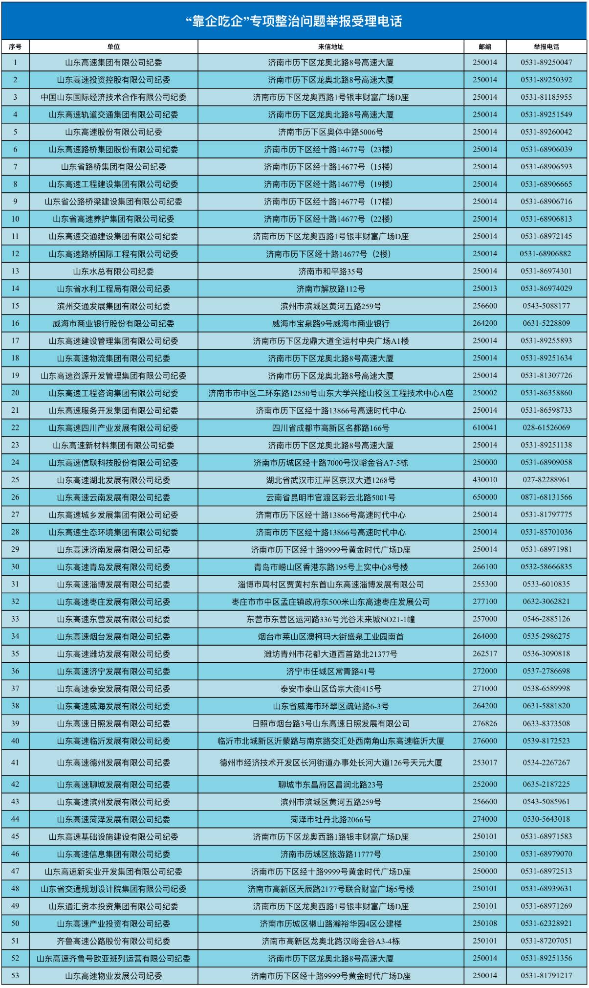 山東高速集團“靠企吃企”專項整治問題舉報受理電話